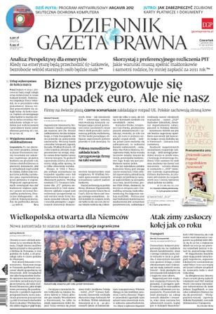 Dziennik Gazeta Prawna – codziennie obiektywne i rzetelne informacje z kraju i ze świata. Piszemy o tym, co dziś ważne i odpowiadamy na Wasze pytania – szczególnie te związane z obecnymi wyzwaniami tj. pandemia, praca zdalna. Na bieżąco wyjaśniamy zmieniające się przepisy. Wspieramy się wyjaśnieniami ministerstw i urzędów. Pomagamy unikać błędów i ostrzegamy, jakie są kary. Ponadto w każdy piątek specjalne magazynowe wydanie Dziennika Gazety Prawnej w całości z tekstami społeczno-ekonomicznymi.