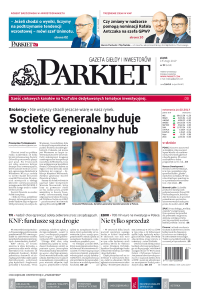 Największy w Polsce newsroom gospodarczy zbiera, analizuje i zgłębia dla Państwa najważniejsze informacje ze świata finansów. Codzienne wydanie „Parkietu”, sześć dni w tygodniu, to kilkadziesiąt artykułów o emitentach, instytucjach finansowych, gospodarce. To również opinie, felietony i wywiady z najważniejszymi ludźmi krajowej i globalnej finansjery.