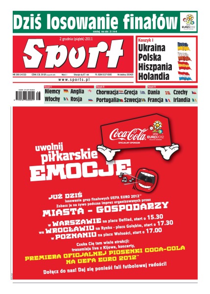 Dziś losowanie finałów Euro 2012; Wisła Kraków wygrała na wyjeździe z Odense BK 2:1; Kimi Räikkönen wraca do Formuły 1.