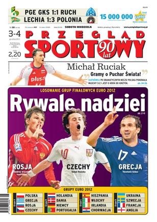 Los nam sprzyjał – w finałach Euro 2012 zaczniemy od meczów z Grecją, Rosją i Czechami; opinie selekcjonerów drużyn „polskiej” grupy; wszystko o naszych rywalach: zawodnicy, osiągnięcia, bilans spotkań; Telewizja Polska już przygotowuje się do imprezy; Michel Platini przeprowadził męską rozmowę z Grzegorzem Latą; GKS Bełchatów tylko zremisował z Ruchem Chorzów; Lechia Gdańsk przegrała pierwszy mecz na PGE Arenie – Edgar Cani dokonał egzekucji; Orest Leńczyk boi się wyjazdowego meczu Śląska z Górnikiem; zapowiedź najlepszych meczów w ligach zagranicznych; polskim siatkarzom brakuje tylko punktu, aby pojechać na igrzyska.