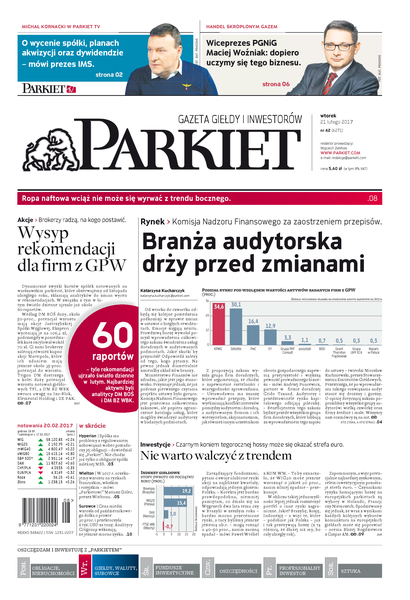 Największy w Polsce newsroom gospodarczy zbiera, analizuje i zgłębia dla Państwa najważniejsze informacje ze świata finansów. Codzienne wydanie „Parkietu”, sześć dni w tygodniu, to kilkadziesiąt artykułów o emitentach, instytucjach finansowych, gospodarce. To również opinie, felietony i wywiady z najważniejszymi ludźmi krajowej i globalnej finansjery.
