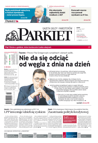 Największy w Polsce newsroom gospodarczy zbiera, analizuje i zgłębia dla Państwa najważniejsze informacje ze świata finansów. Codzienne wydanie „Parkietu”, sześć dni w tygodniu, to kilkadziesiąt artykułów o emitentach, instytucjach finansowych, gospodarce. To również opinie, felietony i wywiady z najważniejszymi ludźmi krajowej i globalnej finansjery.