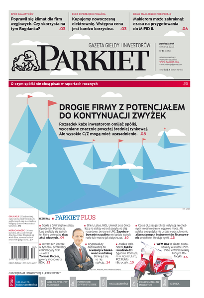 Największy w Polsce newsroom gospodarczy zbiera, analizuje i zgłębia dla Państwa najważniejsze informacje ze świata finansów. Codzienne wydanie „Parkietu”, sześć dni w tygodniu, to kilkadziesiąt artykułów o emitentach, instytucjach finansowych, gospodarce. To również opinie, felietony i wywiady z najważniejszymi ludźmi krajowej i globalnej finansjery.