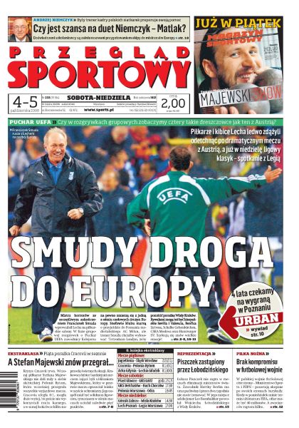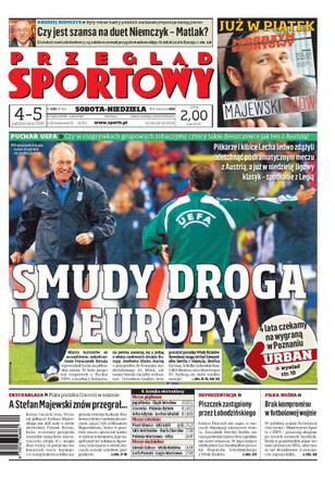 Nigdy nie rezygnuję - wywiad z Franciszkiem Smudą; radość w Poznaniu po zwycięstwie nad Austrią; ten awans to nagroda za ciężką pracę- mówią piłkarze Lecha; rozmowa z Rafałem Murawskim; w Poznaniu chcą zagrać z Milanem; Lechia wygrała z Arką po raz pierwszy od 11 lat; w niedzielę Lech Poznań zagra z Legią Warszawa; minister sportu nie ugnie się pod ultimatum FIFA; w najbliższym czasie będzie kontrola w Polskim Związku szermierzy- wywiad z Mirosławem Drzewieckim; czy Andrzej Niemczyk mógłby poprowadzić kadrę kobiet wspólnie z Jerzym Matlakiem; wywiad z Robertem Radwańskim.