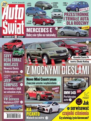 SUV-y Seata i Volkswagena; Hyundai i30 Wagon – kombi w sprzedaży za 3 miesiące; Jeep Compass – przedpremierowa jazda nowym SUV-em; Kia Picanto – prezentacja 3. generacji malucha; Isuzu D-Max – pierwsza jazda pikapem po zmianach; Skoda Kodiaq kontra Hyundai Santa Fe – porównanie dużych SUV-ów; BMW 540i – nowa „piątka”z 3-litrowym R6 i napędem 4x4; Mini Countryman – stylowy SUV w sportowej wersji Cooper S; czujniki ciśnienia powietrza w oponach.