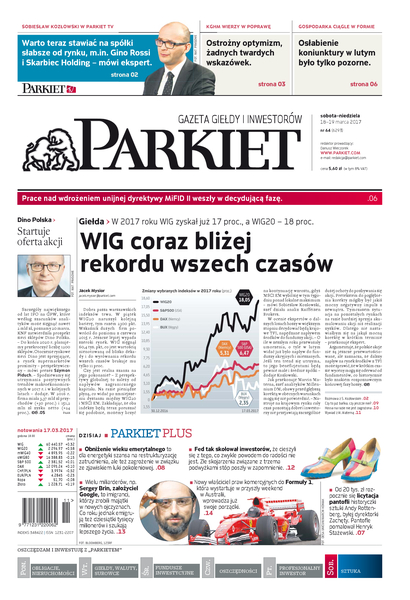 Największy w Polsce newsroom gospodarczy zbiera, analizuje i zgłębia dla Państwa najważniejsze informacje ze świata finansów. Codzienne wydanie „Parkietu”, sześć dni w tygodniu, to kilkadziesiąt artykułów o emitentach, instytucjach finansowych, gospodarce. To również opinie, felietony i wywiady z najważniejszymi ludźmi krajowej i globalnej finansjery.
