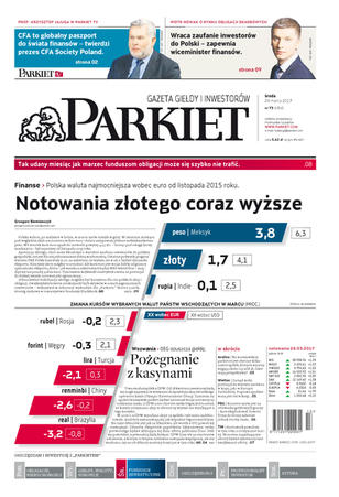 Największy w Polsce newsroom gospodarczy zbiera, analizuje i zgłębia dla Państwa najważniejsze informacje ze świata finansów. Codzienne wydanie „Parkietu”, sześć dni w tygodniu, to kilkadziesiąt artykułów o emitentach, instytucjach finansowych, gospodarce. To również opinie, felietony i wywiady z najważniejszymi ludźmi krajowej i globalnej finansjery.