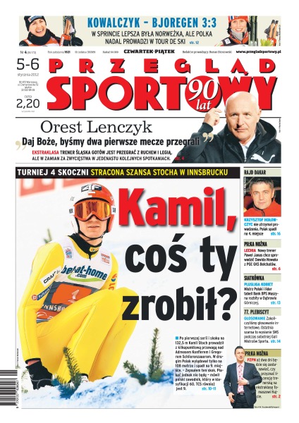Justyna Kowalczyk znów została wyprzedzona przez Marit Bjoergen, ale nadal prowadzi w Tour de Ski; Kamil Stoch po występie w Innsbrucku zajął 9. miejsce w Turnieju Czterech Skoczni; po czwartym etapie Rajdu Dakar Krzysztof Hołowczyc spadł z pierwszego na czwarte miejsce, a na czele znalazł się Stephane Peterhansel.