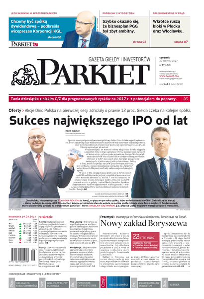 Największy w Polsce newsroom gospodarczy zbiera, analizuje i zgłębia dla Państwa najważniejsze informacje ze świata finansów. Codzienne wydanie „Parkietu”, sześć dni w tygodniu, to kilkadziesiąt artykułów o emitentach, instytucjach finansowych, gospodarce. To również opinie, felietony i wywiady z najważniejszymi ludźmi krajowej i globalnej finansjery.