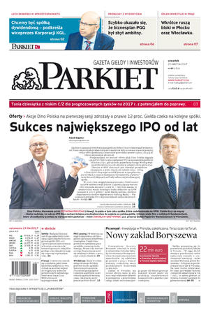 Gazeta Giełdy i Inwestorów Parkiet przyspiesza publikację e-wydania. Od poniedziałku, już od godz. 20.00, można kupić i przeczytać e-wydanie Parkietu, które w wersji papierowej ukaże się dopiero następnego dnia. Parkiet jest więc najświeższą gazetą finansową w Polsce.
