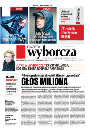 Największa opiniotwórcza gazeta w Polsce. Powstała w 1989 roku jako platforma pierwszych demokratycznych wyborów do parlamentu. Pierwszy numer ukazał się w nakładzie 150 tys. egzemplarzy. Dziś „Gazeta” jest najchętniej kupowaną i czytaną opiniotwórczą gazetą codzienną, ukazującą się w 23 miastach Polski, wzbogaconą o szereg popularnych dodatków tematycznych, a serwis internetowy Wyborcza.pl jest najpopularniejszą stroną tytułu prasowego w polskim internecie.