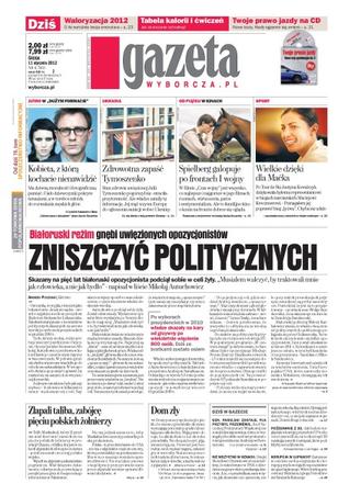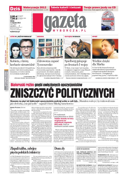 Zniszczyć politycznych – białoruski reżim gnębi uwięzionych opozycjonistów; złapali taliba, zabójcę pięciu polskich żołnierzy; zdrowotna zapaść Julii Tymoszenko – straciła przytomność, ale władze zataiły tę informację; Spielberg galopuje po frontach I wojny; Justyna Kowalczyk dziękuje byłemu reprezentantowi w biegach narciarskich Maciejowi Kreczmerowi; generał Parulski zostaje, pułkownik Przybył przemówił; zatrzymano siedem osób podejrzanych o korupcje przy koncesjach na poszukiwanie gazu łupkowego.