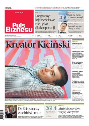 Kreator Kiciński – bije nas na głowę pomysłowością, wyznacza kierunki, dodaje sił do działania – tak o współtwórcy sukcesu CD Projekt Red mówią partnerzy ze spółki; programy lojalnościowe nie tylko dla korporacji; bank nie chciał, a fundusz pomógł – Świętokrzyski Fundusz Pożyczkowy sfinansował wyciąg narciarski; bankowe puzzle – Belgowie spuścili cenę za Kredyt Bank; ustawa śmieciowa oznacza kłopoty; Graal ma chrapkę na marki Wilbo; samorząd gotów blokować A1; Prologis ma patent na puste magazyny; Dr Eris skoczy za chiński mur; mniej depozytów, więcej kredytów.