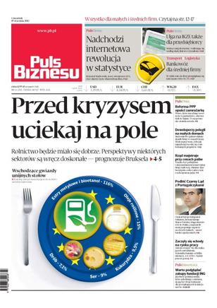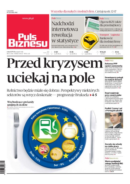 Przed kryzysem uciekaj na pole – rolnictwo będzie miało się dobrze, perspektywy niektórych sektorów są wręcz doskonałe wg prognoz Brukseli; nadchodzi internetowa rewolucja w statystyce; ulga na IKZE także dla przedsiębiorcy; bankowóz dla średniej firmy; reforma PPP opuści zamrażarkę; deweloperzy polegli na małych domach; rząd majstruje przy cenach paliw; podbić Czarny Ląd z Portugalczykami – Central Europe Integrated Solutions, którym kieruje Bruno Ferreira, ściąga inwestorów do Polski, a naszym firmom proponuje wsparcie na obcych rynkach; zaczęły się schody na rynkach pracy; warto podglądać zakupy fundacji ING.