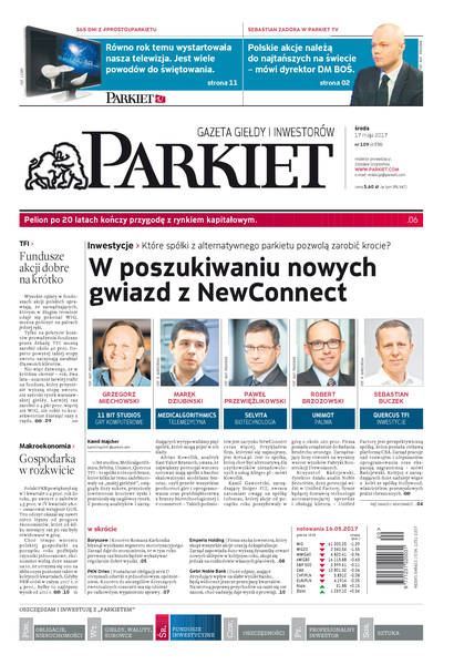 Największy w Polsce newsroom gospodarczy zbiera, analizuje i zgłębia dla Państwa najważniejsze informacje ze świata finansów. Codzienne wydanie „Parkietu”, sześć dni w tygodniu, to kilkadziesiąt artykułów o emitentach, instytucjach finansowych, gospodarce. To również opinie, felietony i wywiady z najważniejszymi ludźmi krajowej i globalnej finansjery.