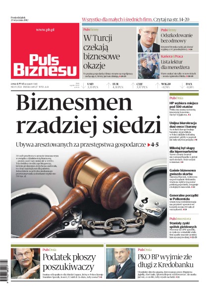 Turcja jest krajem o dużym potencjale biznesowych okazji – turecka gospodarka jest prężna, a firmy otwarte są na współpracę; Krzysztof Bromka radzi, jak dostać wypłatę z OC przedsiębiorcy; ubywa aresztowanych za przestępstwa gospodarcze; Polska ma szanse na trzecią inwestycję koncerny Hewlett-Packard; nawet czwarty kwartał minionego roku nie rozruszał handlu w globalnych sieciach.