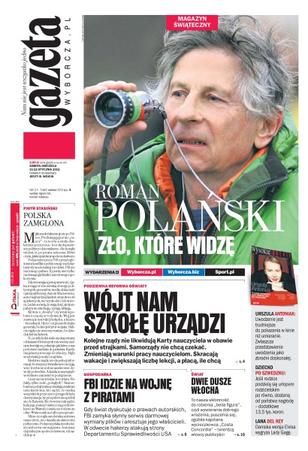 Samorządy szukają pomysłów, aby oszczędzić na pensjach dla nauczycieli, lecz dać im więcej pracy; zapowiada się koniec protestu lekarzy i aptekarzy; FBI zamknęło popularny serwis piracki MegaUpload i jego założycieli; niemiecki ubezpieczyciel Talanx kupił Wartę za 770 mln euro; trzy lata temu General Motors dostał 50 mld dolarów pożyczki, a teraz odzyskał fotel lidera producentów aut; twórczość Romana Polańskiego i polska premiera „Rzezi”; Witold Gadomski przestrzega bankructwem systemów emerytalnych.