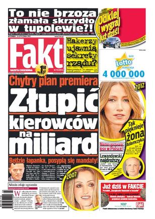 Donald Tusk ma chytry plan – chce złupić polskich kierowców na miliard złotych; to nie prawda, że skrzydłu prezydenckiego Tu-154 złamało się wskutek zderzenia z brzozą; zobacz jak w ciągu 5 lat wypiękniała żona Piotra Adamczyka; czy hakerzy ujawnią sekrety polskiego rządu; zobacz ile wynosi fundusz na kreacje pierwszej pary RP; gwałciciel własnych córek został skazany na 14 lat pozbawienia wolności.