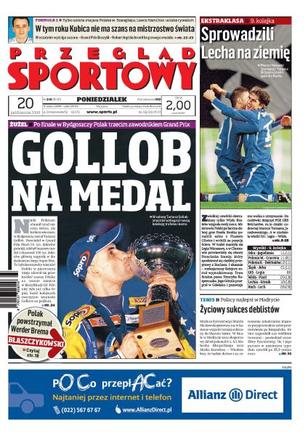 Nicki Pedersen obronił tytuł żużlowego mistrza świata, Tomasz Gollob został trzecim zawodnikiem Grand Prix; rozmowa z Pawłem Brożkiem, napastnikiem reprezentacji Polski; 9. kolejka ekstraklasy - Wisła na czele tabeli, Polonia zremisowała z Cracovią 1:1; Robert Kubica stracił szansę na zwycięstwo w klasyfikacji kierowców Formuły 1; trzy mistrzowskie tytuły Polaków na bokserskiej gali w Zabrzu; ruszyła PlusLiga - siatkarska liga kobiet; Unibax Toruń pokonał Unię Leszno 47:43 i został żużlowym mistrzem Polski; Real wygrał z Atletico 2:1 w najbardziej dramatycznych derbach Madrytu w historii.