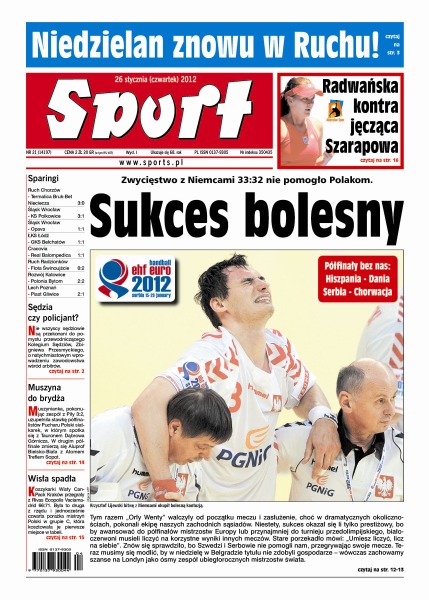Mimo zwycięstwa nad Niemcami polscy piłkarze ręczni nie awansowali do półfinałów mistrzostw Europy; nie wszyscy sędziowie są przekonani do pomysłu Zbigniewa Przesmyckiego, przewodniczącego Kolegium Sędziów, o natychmiastowym wprowadzeniu zawodowstwa wśród arbitrów; koszykarki Wisły CanPack Kraków przegrały z Rivas Ecopolis Vaciamadrid.