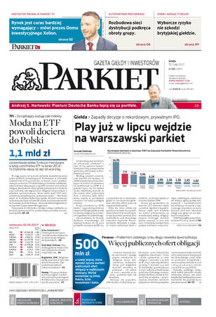 Gazeta Giełdy i Inwestorów Parkiet przyspiesza publikację e-wydania. Od poniedziałku, już od godz. 20.00, można kupić i przeczytać e-wydanie Parkietu, które w wersji papierowej ukaże się dopiero następnego dnia. Parkiet jest więc najświeższą gazetą finansową w Polsce.