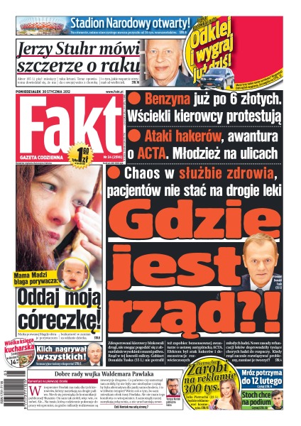 Jerzy Stuhr opowiada o swojej walce z chorobą; benzyna już po 6 zł.; rodzice porwanej Magdy z Sosnowca błagają o oddanie córki; Stadion Narodowy w Warszawie został otwarty; Doda kłóci się o pieniądze z byłym menedżerem; Sylwia Gliwa spodziewa się dziecka; beduini napadli na kantor w Szarm el-Szejk, zabili francuskiego turystę, zranili Niemca i dwóch Egipcjan.
