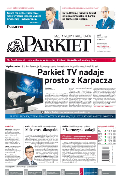 Największy w Polsce newsroom gospodarczy zbiera, analizuje i zgłębia dla Państwa najważniejsze informacje ze świata finansów. Codzienne wydanie „Parkietu”, sześć dni w tygodniu, to kilkadziesiąt artykułów o emitentach, instytucjach finansowych, gospodarce. To również opinie, felietony i wywiady z najważniejszymi ludźmi krajowej i globalnej finansjery.