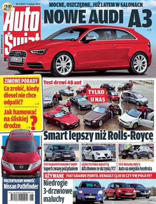 Audi A3 – trzecia generacja kompaktowego „bawarczyka”; Mercedes SLK AMG/VW Sharan 4Motion/Volvo C30 Electric/Porsche Panamera GTS – wrażenia z pierwszych jazd nowymi wersjami napędowymi; Alfa Romeo Giulietta z nową dwusprzęgłową skrzynią biegów TCT; Toyota wraca do zawodów długodystansowych; wielki test drzwi samochodowych – porównanie komfortu wsiadania i wysiadania w 48 autach; Skoda Superb Combi – zakończenie testu długodystansowego obszernej „czeszki”; bezpieczny odstęp od poprzedzającego pojazdu; Fiat Grande Punto, Renault Clio III i VW Polo IV – porównanie kilkuletnich małych hatchbacków.