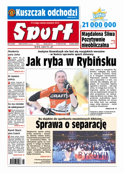 Po negatywnych opiniach policji, straży pożarnej i sanepidu władze stolicy nie wydały zgody na rozegranie meczu o Superpuchar na Stadionie Narodowym; Justyna Kowalczyk dziś i jutro będzie rywalizowała z Marit Bjoergen w Rybińsku; Wojciech Pawłowski został oficjalnie piłkarzem Udinese Calcio; Śląsk Wrocław zremisował w towarzyskim meczu z mistrzem Rumunii Otelulem Galati; Fernando Torres – wielki niewypał za wielkie pieniądze; Tomasz Kuszczak nie przedłuży kontraktu z Manchesterem United.