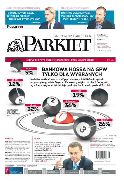 Największy w Polsce newsroom gospodarczy zbiera, analizuje i zgłębia dla Państwa najważniejsze informacje ze świata finansów. Codzienne wydanie „Parkietu”, sześć dni w tygodniu, to kilkadziesiąt artykułów o emitentach, instytucjach finansowych, gospodarce. To również opinie, felietony i wywiady z najważniejszymi ludźmi krajowej i globalnej finansjery.
