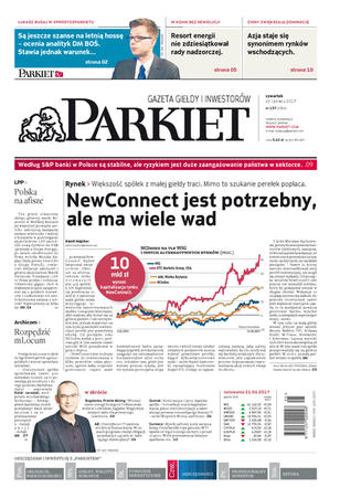 Gazeta Giełdy i Inwestorów Parkiet przyspiesza publikację e-wydania. Od poniedziałku, już od godz. 20.00, można kupić i przeczytać e-wydanie Parkietu, które w wersji papierowej ukaże się dopiero następnego dnia. Parkiet jest więc najświeższą gazetą finansową w Polsce.