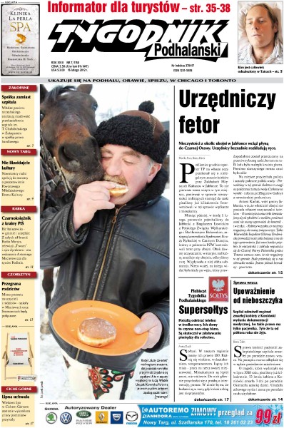 Zarząd powiatu tatrzańskiego analizuje możliwość przekształcenia szpitala im. T. Chałubińskiego w Zakopanem w spółkę prawa handlowego; tajemniczy mężczyzna znaleziony kilka dni temu w Tatrach to 36-latek z Węgorzewa, zawodowy żołnierz; zakopiański urząd miasta po macoszemu potraktował Mikołaja, który odwiedził Zakopane; po raz 40. Bukowina Tatrzańska zamieniła się w karnawałową stolicę Polski; ze świetnymi wynikami wróciła ze skialpinistycznych