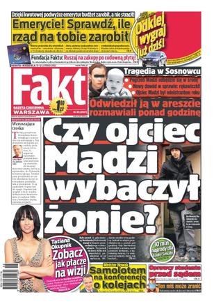 Ojciec Madzi z Sosnowca odwiedził żonę w więzieniu; poparcie dla PO drastycznie spadło; zgodnie ze wskaźnikami GUS, emerytury i renty powinny wzrosnąć w tym roku jeszcze o dodatkowe 3 złote; Edyta Górniak wydała 300 tys. zł na teledyski.