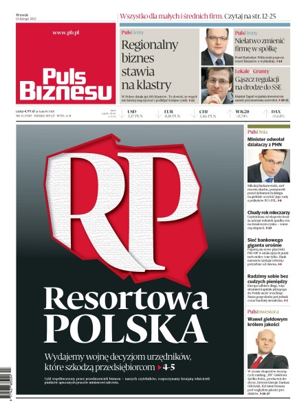 W Polsce działa już 180 klastrów – to dowód, że wspólnie łatwiej negocjować i podbijać kolejne rynki; Kiejstut Żaguń wyjaśnia inwestorom zasady przyznawania zezwoleń; wydajemy wojnę decyzjom urzędników, które szkodzą przedsiębiorcom; Mikołaj Budzanowski, szef resortu skarbu, postanowił przed debiutem holdingu na giełdzie oczyścić jego radę z polityków PO i PSL; czy uzależniona od eksportu branża mleczna ucierpi wskutek spadku cen na światowym rynku; pojawią się nowe placówki PKO BP w atrakcyjnych punktach stolicy i nie tylko – bank nareszcie szykuje reformy potrzebne od dawna; Europa odbiera długi, więc strumień kapitału płynącego do Polski może wyschnąć.