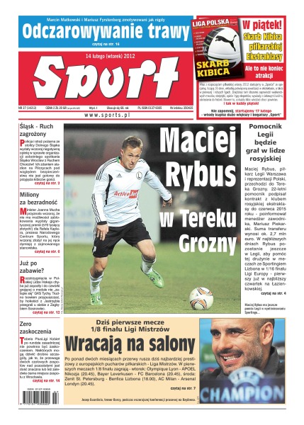 Maciej Rybus, piłkarz Legii Warszawa i reprezentacji Polski, przechodzi do Tereka Grozny; po ponad dwóch miesiącach przerwy rusza dziś najbardziej prestiżowy z europejskich pucharów piłkarskich – Liga Mistrzów; w piątek i sobotę pierwszy raz w Polsce odbędą się zawody Pucharu Świata w biegach narciarskich; myślę, że prędzej czy później zrobimy wielki wynik – mówi Marcin Matkowski, deblowy partner Mariusza Fyrstenberga.