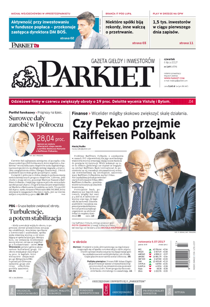 Największy w Polsce newsroom gospodarczy zbiera, analizuje i zgłębia dla Państwa najważniejsze informacje ze świata finansów. Codzienne wydanie „Parkietu”, sześć dni w tygodniu, to kilkadziesiąt artykułów o emitentach, instytucjach finansowych, gospodarce. To również opinie, felietony i wywiady z najważniejszymi ludźmi krajowej i globalnej finansjery.