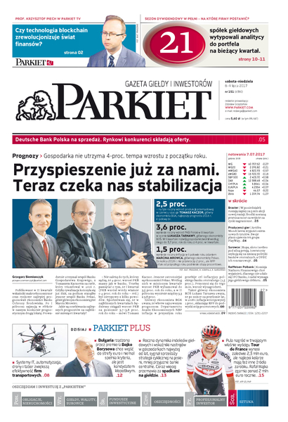 Największy w Polsce newsroom gospodarczy zbiera, analizuje i zgłębia dla Państwa najważniejsze informacje ze świata finansów. Codzienne wydanie „Parkietu”, sześć dni w tygodniu, to kilkadziesiąt artykułów o emitentach, instytucjach finansowych, gospodarce. To również opinie, felietony i wywiady z najważniejszymi ludźmi krajowej i globalnej finansjery.