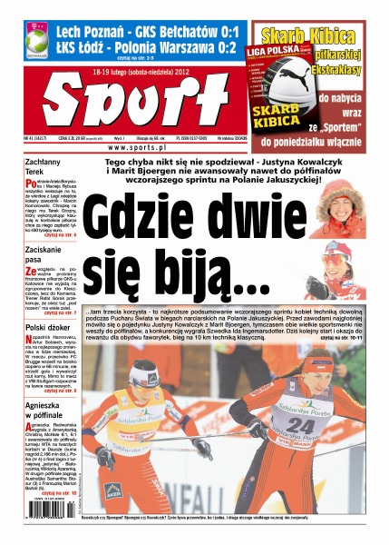 Justyna Kowalczyk i Marit Bjoergen nie awansowały do półfinałów sprintu na Polanie Jakuszyckiej; po stracie Ariela Borysiuka i Macieja Rybusa wszystko wskazuje na to, że wkrótce z Legii odejdzie Marcin Komorowski; ze względu na problemy finansowe piłkarze GKS-u Katowice nie wyjadą na zgrupowanie do Kleszczowa, lecz do Kamienia.