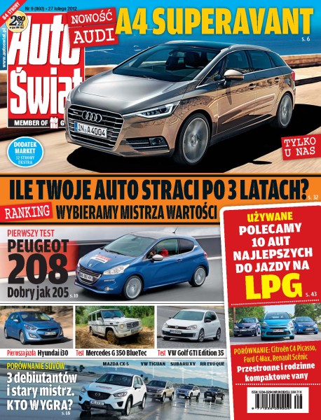Audi A4 Superavant – pierwszy van bawarskiej marki premium; Hyundai i30 – jazda testowa kompaktowym „koreańczykiem”; Peugeot 208 – nowa generacja małego lwa; porównanie kompaktowych SUV-ów; Lancia Thema: amerykańsko-włoska limuzyna klasy wyższe; zasady zachowania na skrzyżowaniu; kluczyki w zatrzaśniętym samochodzie – jak dostać się do zamkniętego auta; które samochody najszybciej tracą na wartości.