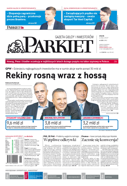 Największy w Polsce newsroom gospodarczy zbiera, analizuje i zgłębia dla Państwa najważniejsze informacje ze świata finansów. Codzienne wydanie „Parkietu”, sześć dni w tygodniu, to kilkadziesiąt artykułów o emitentach, instytucjach finansowych, gospodarce. To również opinie, felietony i wywiady z najważniejszymi ludźmi krajowej i globalnej finansjery.