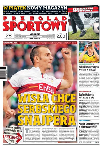 Wisła Kraków chce sprowadzić Danijela Ljuboi; Stefan Majewski nie jest już szkoleniowcem Cracovii; mimo złamanego nosa Kuba Błaszczykowski będzie grał, operację przekłada na przyszły tydzień; Marcin Gortat zapowiada, że chce zostać mistrzem NBA; zapłata kilkunastu milionów złotych podatku nie doprowadzi PZPN do bankructwa; wywiad z Michałem Listkiewiczem; Marko Samardzić ma już za sobą debiut w PlusLidze; Agnieszka Radwańska zakończyła przełomowy sezon w swojej karierze; wywiad z bokserem Steve'em Cunninghamem.