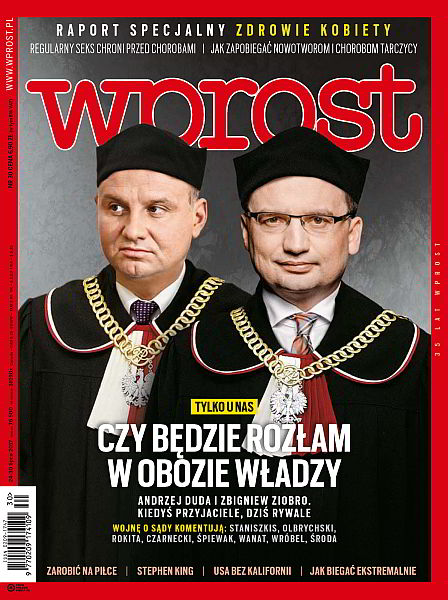 Czy będzie rozłam w obozie władzy: Andrzej Duda i Zbigniew Ziobro – kiedyś przyjaciele, dziś rywale; raport specjalny: zdrowie kobiety; jak zarobić na piłce; Stephen King: arcymistrz horroru; USA bez Kalifornii – marzenia o niepodległości; jak biegać ekstremalnie opowiada Zygmunt Berdychowski, organizator Festiwalu Biegowego w Krynicy, zdobywca Korony Ziemi; wojnę o sądy komentują: Stanszkis, Olbrychski, Rokita, Czarnecki, Śpiewak, Wanat, Wróbel, Środa.