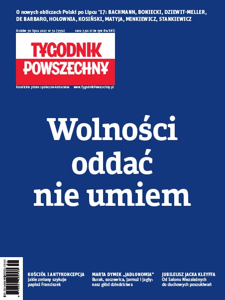 Bachmann, Boniecki, Dziewit-Meller, de Barbaro, Hołownia, Kosiński, Matyja, Minkiewicz, Stankiewicz o nowych obliczach Polski po Lipcu ’17; pół wieku temu Kościół zakazał antykoncepcji - czy papież Franciszek szykuje zmiany; rozmowa z Anną Jakubowską, ps. „Paulinka”, sanitariuszką w Powstaniu Warszawskim; Jacek Kleyff kończy 70 lat.