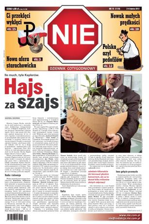 Nowa afera starachowicka; jest w Sejmie jeden człowiek, który naprawdę ciężko pracuje; jak 10 lat temu „NIE” storpedowało „Gawrona”; dlaczego po polskich drogach i torach mkną transporty śmierci, a odpowiedzialni za bezpieczeństwo milionów Polaków urzędnicy wcale się tym nie przejmują; czy kontrolują nas kamery, które są poza kontrolą, także finansową; wojna domowa, w której walczy IPN.