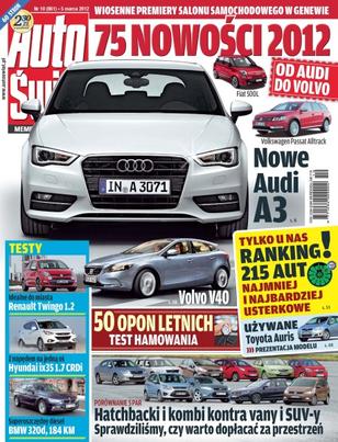 Aktualności, prezentacje: premiery salonu samochodowego w Genewie, Peugeot 508 RXH, Volvo V40; kalejdoskop: Ferrari F12, Pininfarina Cambiano, aplikacje na iPhone’a dla kierowców, dłuższa gwarancja Suzuki, Michelin Primacy; sport: NASCAR – Daytona 500, zwycięstwo Audi w Bathurst 12 Hour, moskiewski Wyścig Gwiazd, DTM – teamy Audi; testy, porównania: Yeti kontra Octavia, Meriva kontra Astra, Venga kontra Rio, Grand C-Max kontra Mondeo, Sharan kontra Passat Variant, Renault Twingo, Hyundai ix35, BMW 320d, Audi A1; porady: test ksenonów, wielki test opon letnich, pojazd uprzywilejowany; używane: Toyota Auris (od 2007 r.), Raport TÜV; auto-fascynacje: Pagani Huayra.
