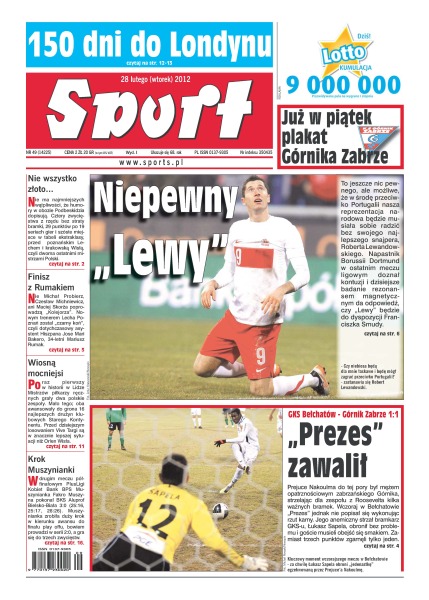 Trenerem Lecha Poznań został Mariusz Rumak; w jutrzejszym meczu piłki nożnej z Portugalią może nie wystąpić Robert Lewandowski; rozmowa z Arturem Nogą, biegaczem na 110 metrów przez płotki; za tydzień w Serbii rozpoczynają się mistrzostwa Europy kobiet w zapasach.