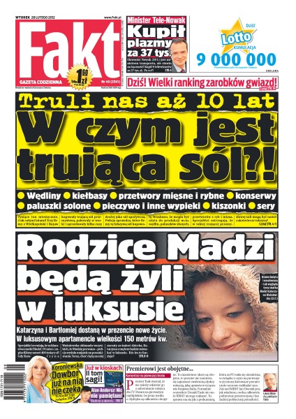 Trzy firmy z Wielkopolski i Kujaw kupowały trującą sól przemysłową i sprzedawały drożej jako sól spożywczą; zakończył się związek Macieja Dowbora i Joanny Koroniewskiej; Weronika Grycan chce wziąć udział w „Tańcu z Gwiazdami”.