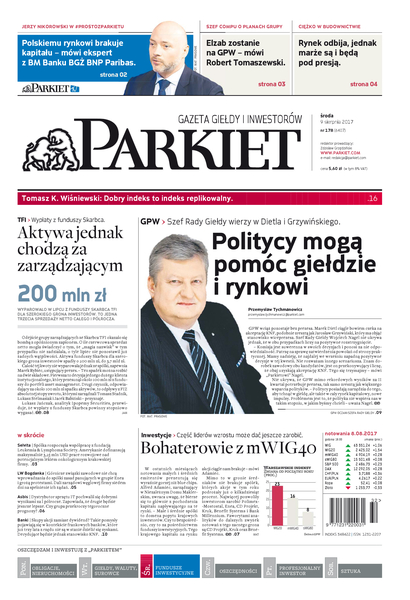 Największy w Polsce newsroom gospodarczy zbiera, analizuje i zgłębia dla Państwa najważniejsze informacje ze świata finansów. Codzienne wydanie „Parkietu”, sześć dni w tygodniu, to kilkadziesiąt artykułów o emitentach, instytucjach finansowych, gospodarce. To również opinie, felietony i wywiady z najważniejszymi ludźmi krajowej i globalnej finansjery.