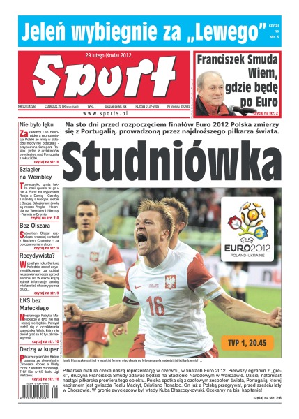 W meczu przeciwko Portugalii Polacy zagrają bez Roberta Lewandowskiego; piłkarze Wisły Kraków przez czerwone kartki do minimum zredukowali szansę na obronę tytułu mistrzowskiego i odpadli z Ligi Europy; Paweł Janas ściągnął do Lechii Gdańsk Jakuba Koseckiego, namawia do przejścia Sebestiana Maderę.