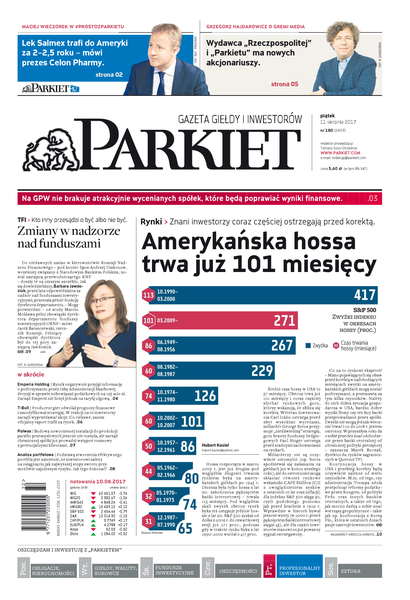 Największy w Polsce newsroom gospodarczy zbiera, analizuje i zgłębia dla Państwa najważniejsze informacje ze świata finansów. Codzienne wydanie „Parkietu”, sześć dni w tygodniu, to kilkadziesiąt artykułów o emitentach, instytucjach finansowych, gospodarce. To również opinie, felietony i wywiady z najważniejszymi ludźmi krajowej i globalnej finansjery.